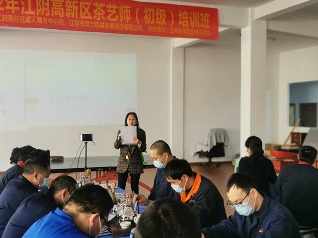 “茶香幽远千年史,茗色不减万古情”。中国是茶的故乡,也是世界茶文化的发源地。茶滋润了中国人几千年,已成为一种独特的、魅力十足的文化符号。为进一步丰富高新区社区居民业余文化生活,弘扬和传承传统文化,提升居民们的生活品位,在江阴高新区管委会的支持下,江阴高新区成人教育中心校联合江阴市常力机械设备制造有限公司、江阴市伟邦职业培训学校,组织常力机械的员工,开展茶艺师(初级)职业技能免费培训,共有44名学员参加本次培训。