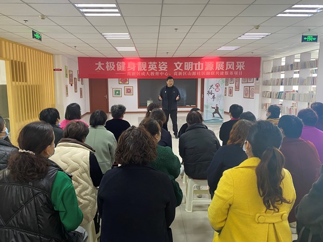 为进一步丰富老年人的健康生活,倡导文明健康的生活方式,营造积极向上的健身氛围,江阴高新区成人教育中心校与高新区山源社区携手开办太极拳公益班,特聘江阴市方圆太极拳协会总教练张辉担任老师。