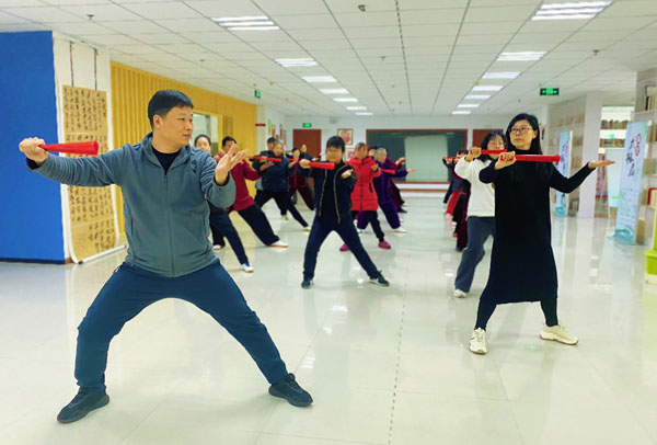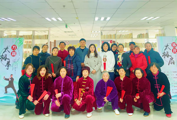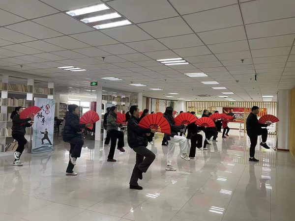 活动现场,张教练耐心分解、示范每一个动作。学员们一袭干练的练功服、一把鲜红的功夫扇,认真学习着一招一式,开步抱扇,后弓步举扇,举手投足之间展现出全神贯注、意气风发的精神风貌。学习过程中,大家彼此交流动作要领,不断反复练习所学动作,静心感受太极扇刚柔相济、修身养性、陶冶情操的内涵。
