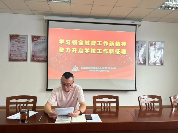 残云收夏暑,新雨带秋岚,告别了丰富多彩的暑假生活,迎来忙碌的金秋九月开学季。8月29日上午,江阴高新区成人教育中心校召开2023-2024学年第一学期开学教职工会议。会议传达学习了杭成副市长讲话要求和市教育局工作报告内容,回顾总结学校上半年主要工作成绩,安排下半年重点目标任务。学校全体教师职工参加会议,校长蒋新丰主持会议并部署新学期学校有关工作。